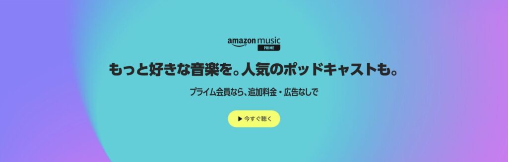 普段あまり楽曲へのこだわりがなければ、Amazonの「Amazon Music Prime」がおすすめです。